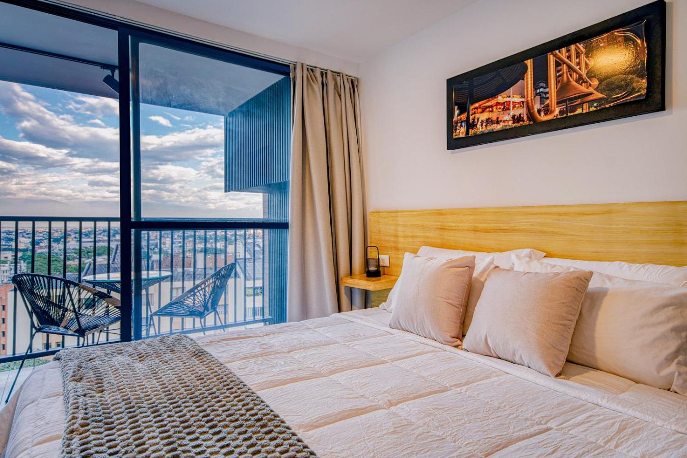 Apartamento Deluxe. This apartment is comprised of 1 living room, 1 separate bedroom and 1 bathroom with a shower and free toiletries. Guests can make meals in the fully equipped kitchen that features a refrigerator, kitchenware and a microwave. Featuring a balcony with city views, this apartment also offers air conditioning and a flat-screen TV. The unit offers 2 beds.