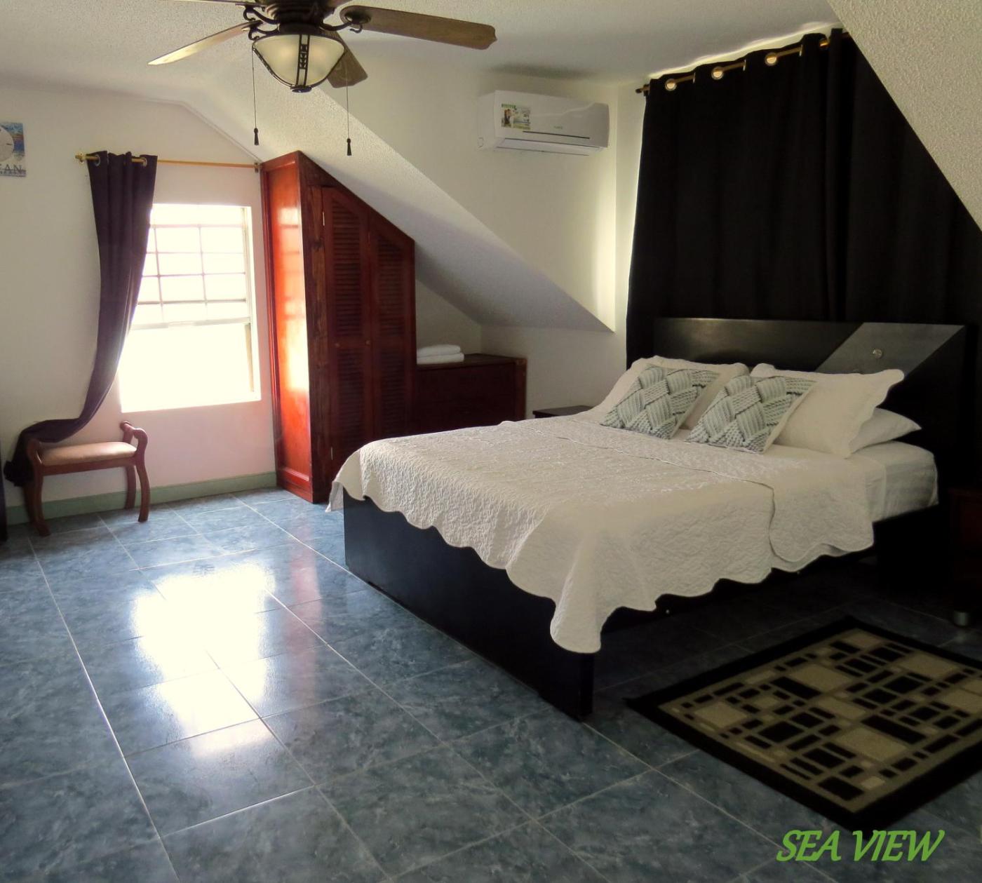 Habitación Doble con vistas al mar. Habitación con aire acondicionado, cama grande, TV de plasma por cable, ventilador, nevera y baño privado. ;